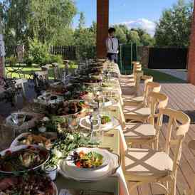 Загородная атмосфера в черте города, банкетный зал 80 мест, летние террасы 50 мест, выездные регистрации, фуршетные столы, фотозоны